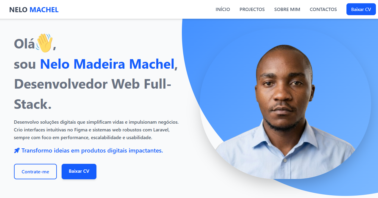 Portfólio profissional desenvolvido para apresentar as minhas competências técnicas, habilidades profissionais e os projectos já desenvolvidos, incluindo aplicações web, sistemas de gestão e soluções digitais criadas ao longo da minha experiência como programador.